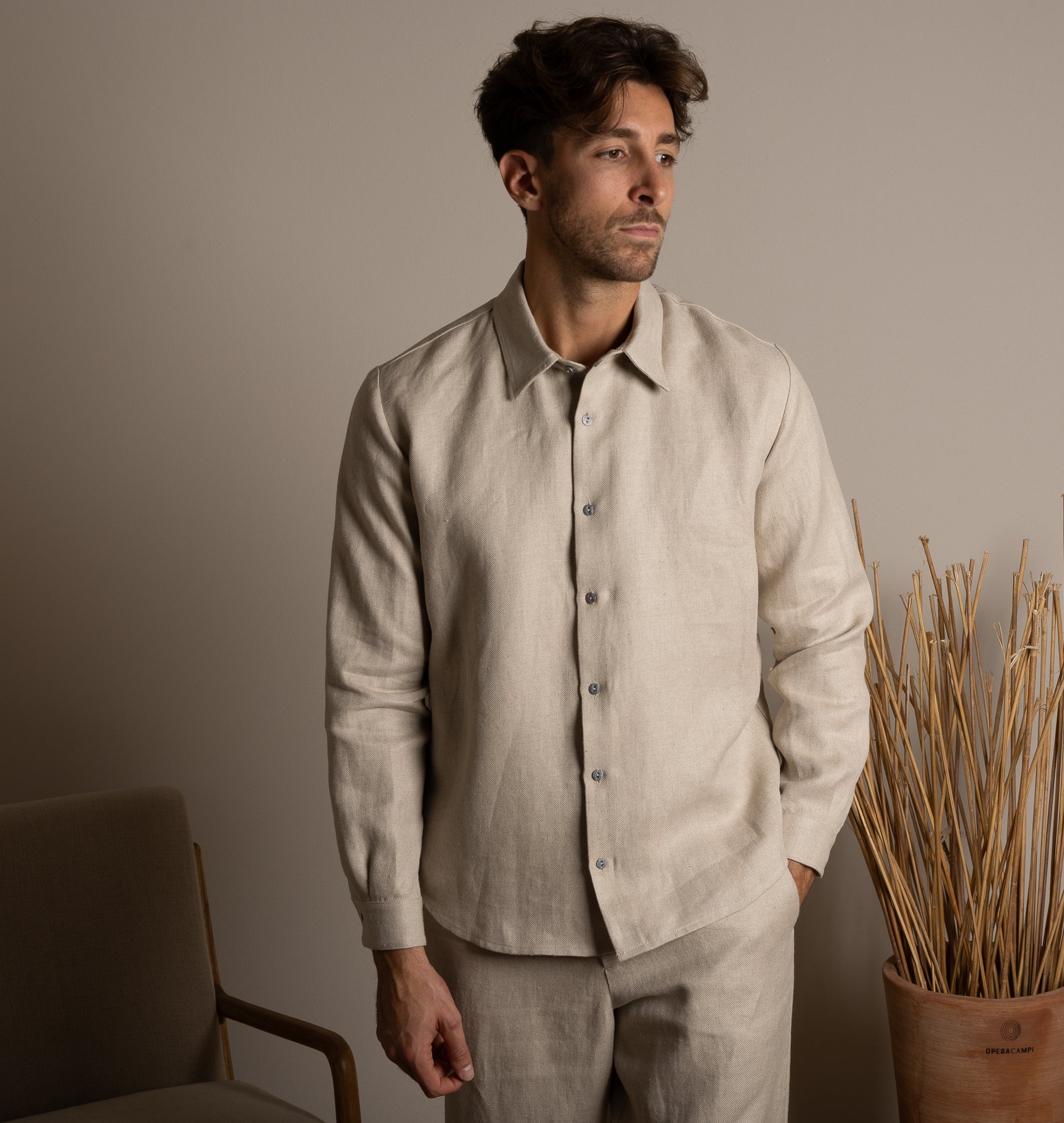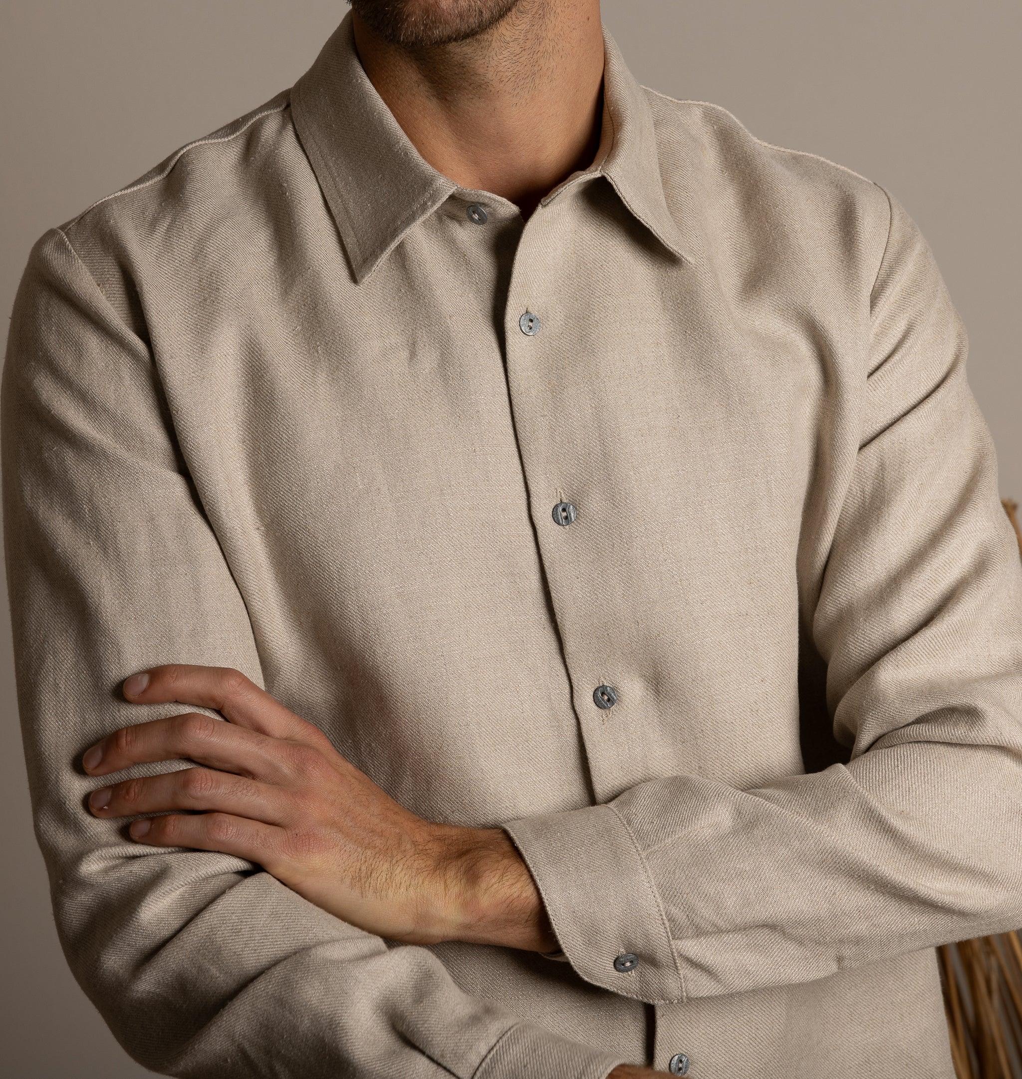 Robust shirt made entirely of finely crafted wet-spun hemp
