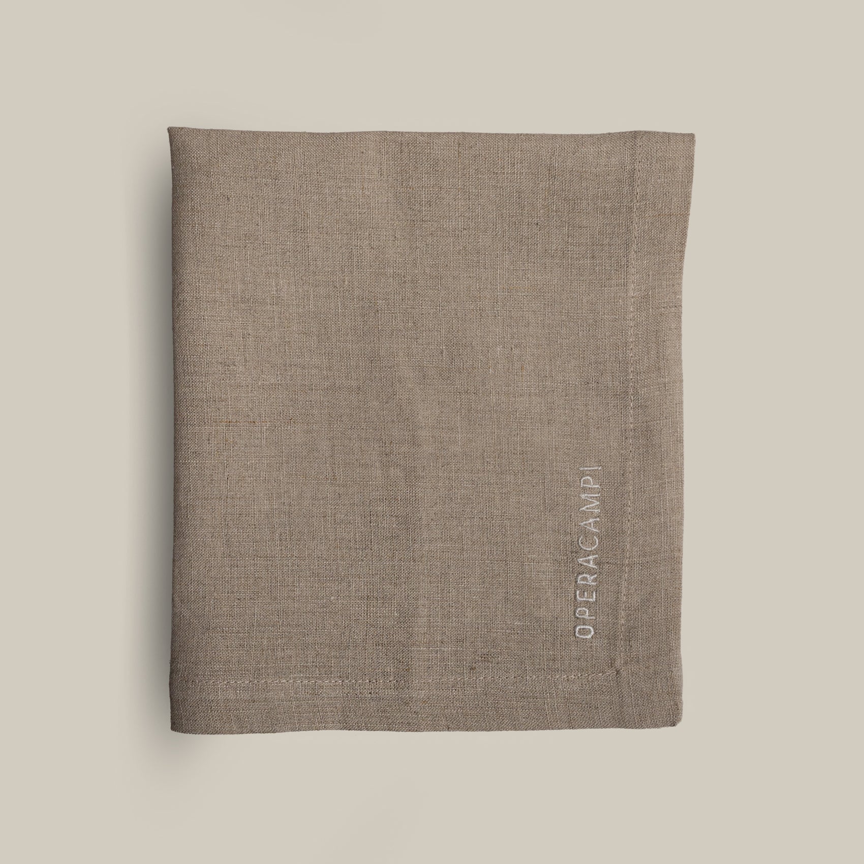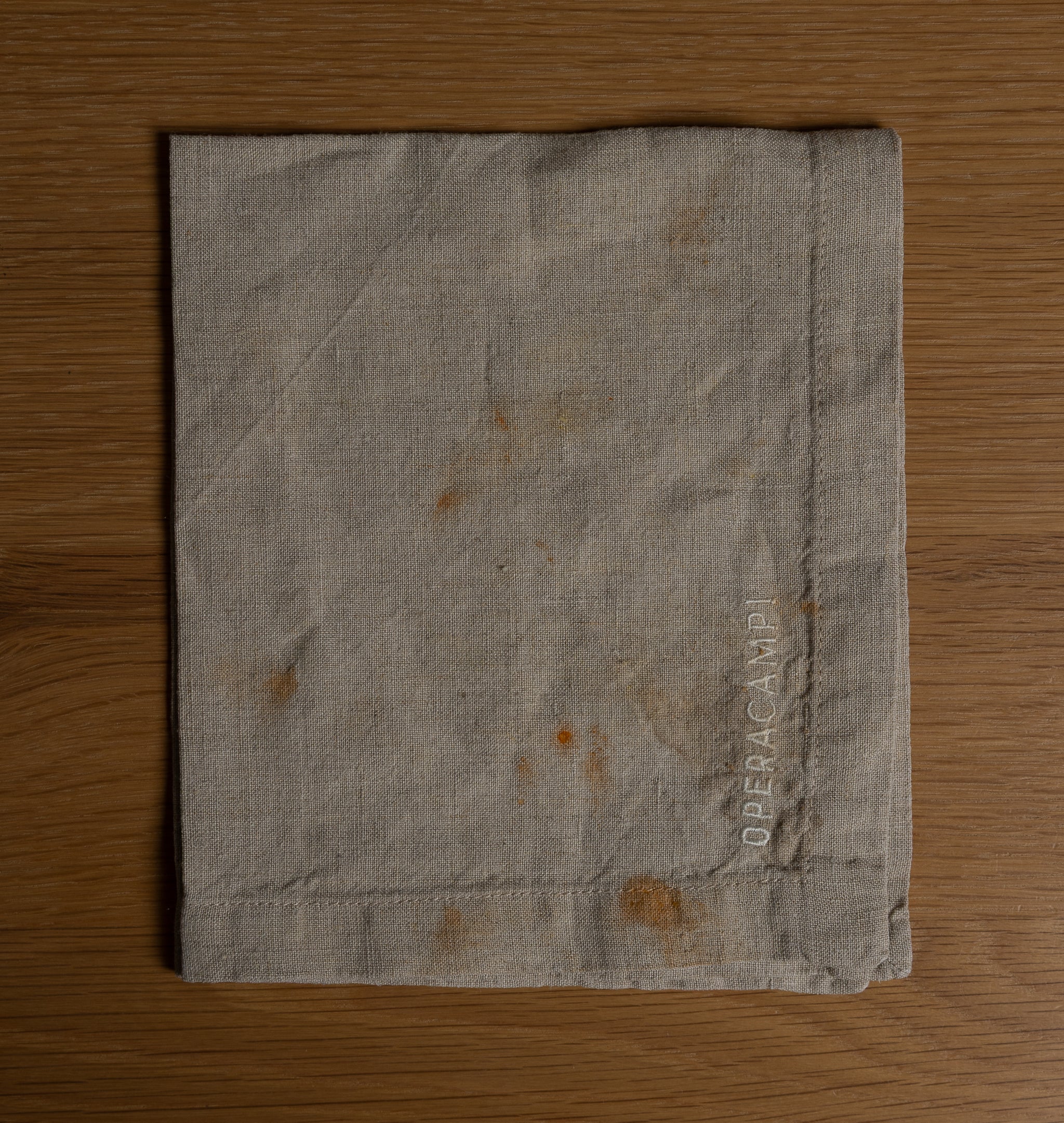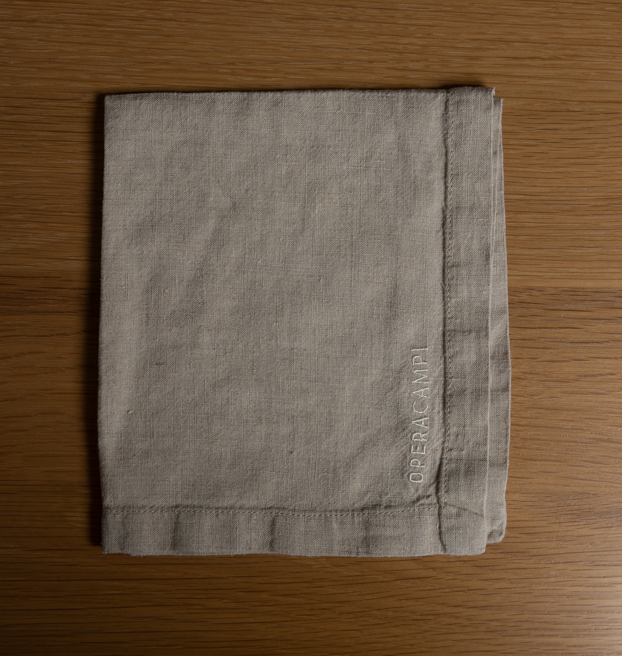 Set of 2 napkins. The Opera Campi napkin was made available for sale 7 months after it was ready, because we wanted to test it intensively first. It passed every real-life test: stained with tomato, coffee, oil. Washing always returned it to its original state.