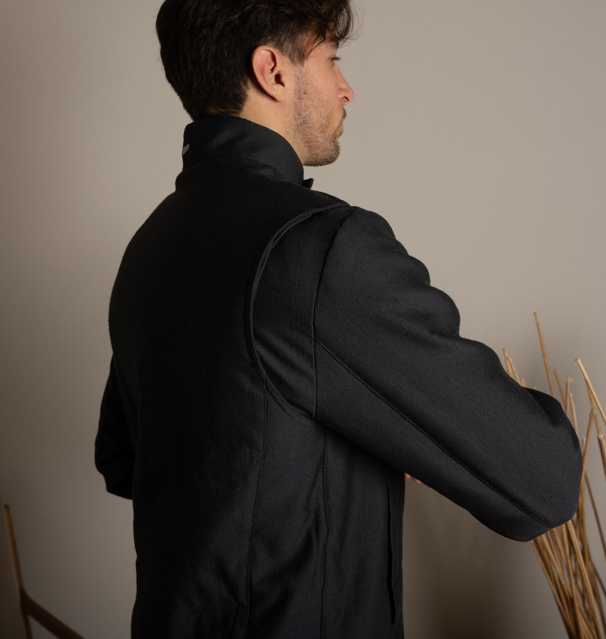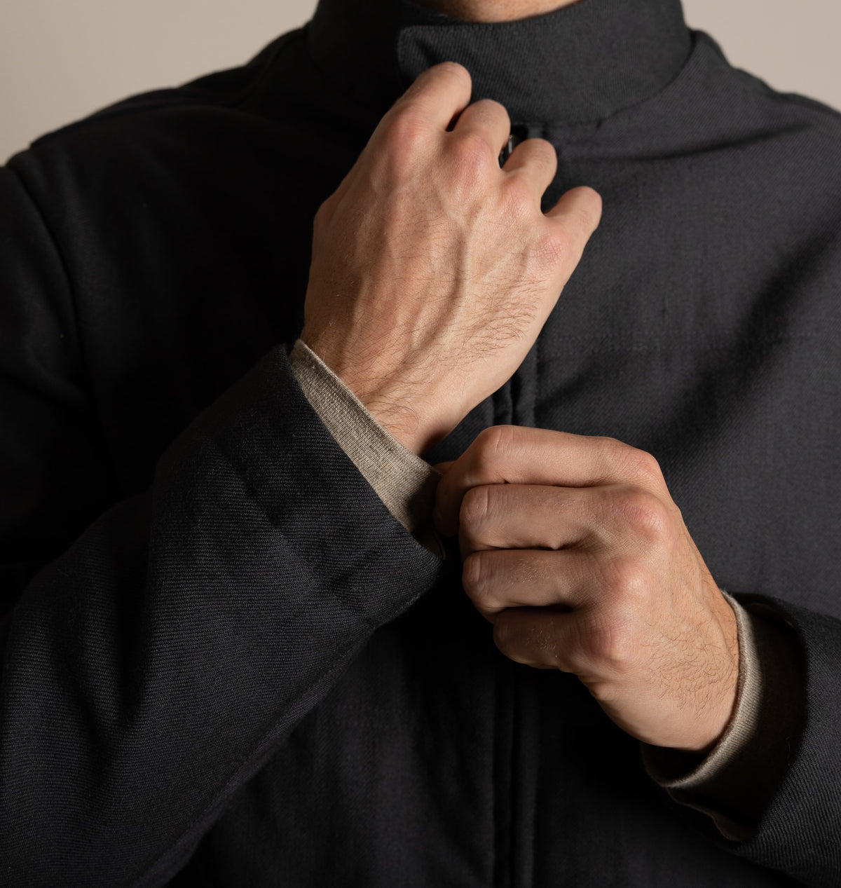 The Lanapa® fabric is our warm invention for jackets and trousers. The fabric is designed by Opera Campi and crafted in Lombardy, Italy. It is composed of 60% fine twisted Australian Merino wool and 40% of our best hemp. Merino wool is among the warmest fibers in existence, while hemp traps air and provides thermoregulation. The result is an intelligent fabric — highly thermal and ideal for multiple seasons, from cold to mild climates. The inside is brushed: this process makes it fluffier to maximize the garment’s warmth and enhance its softness against the skin.