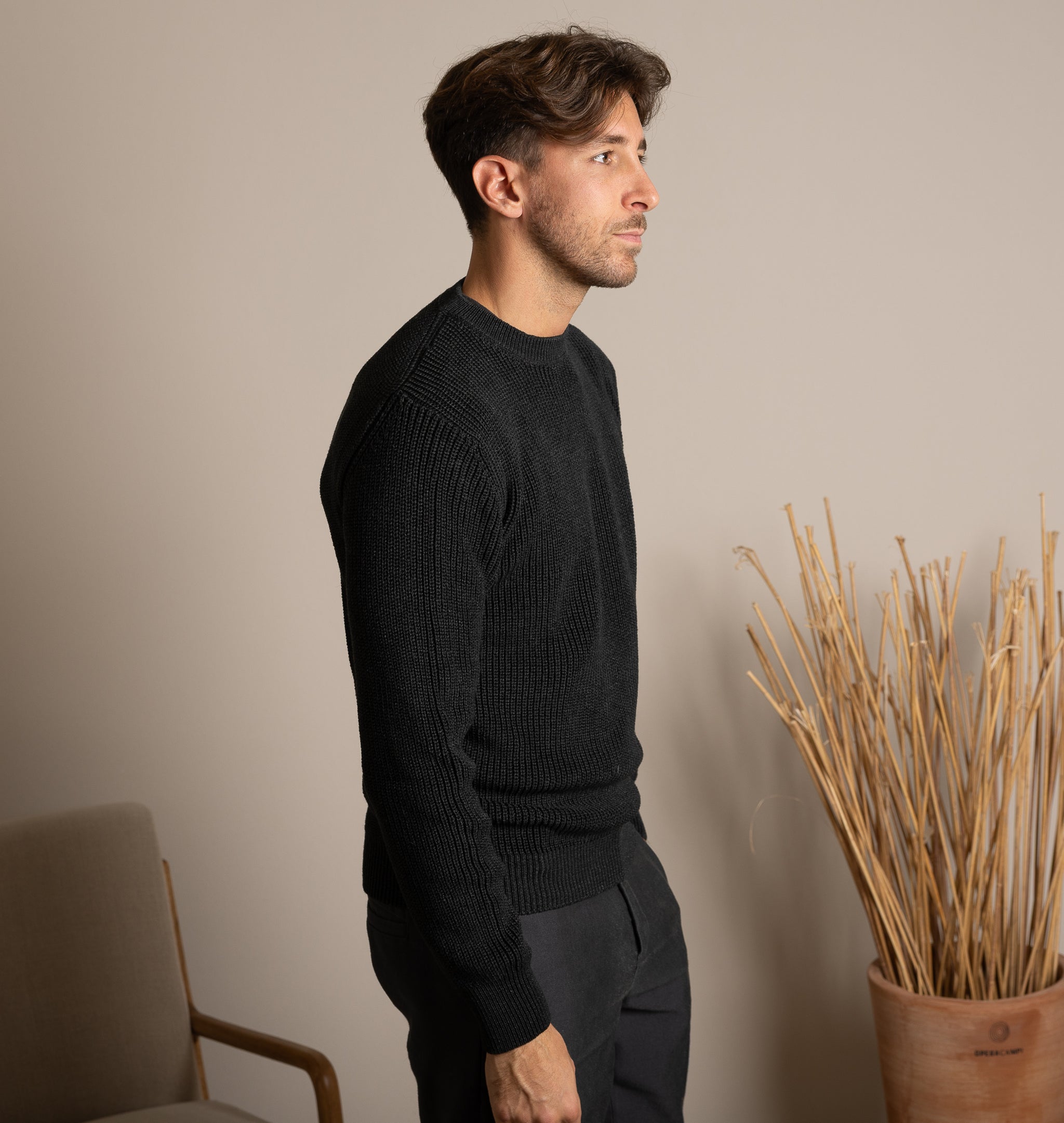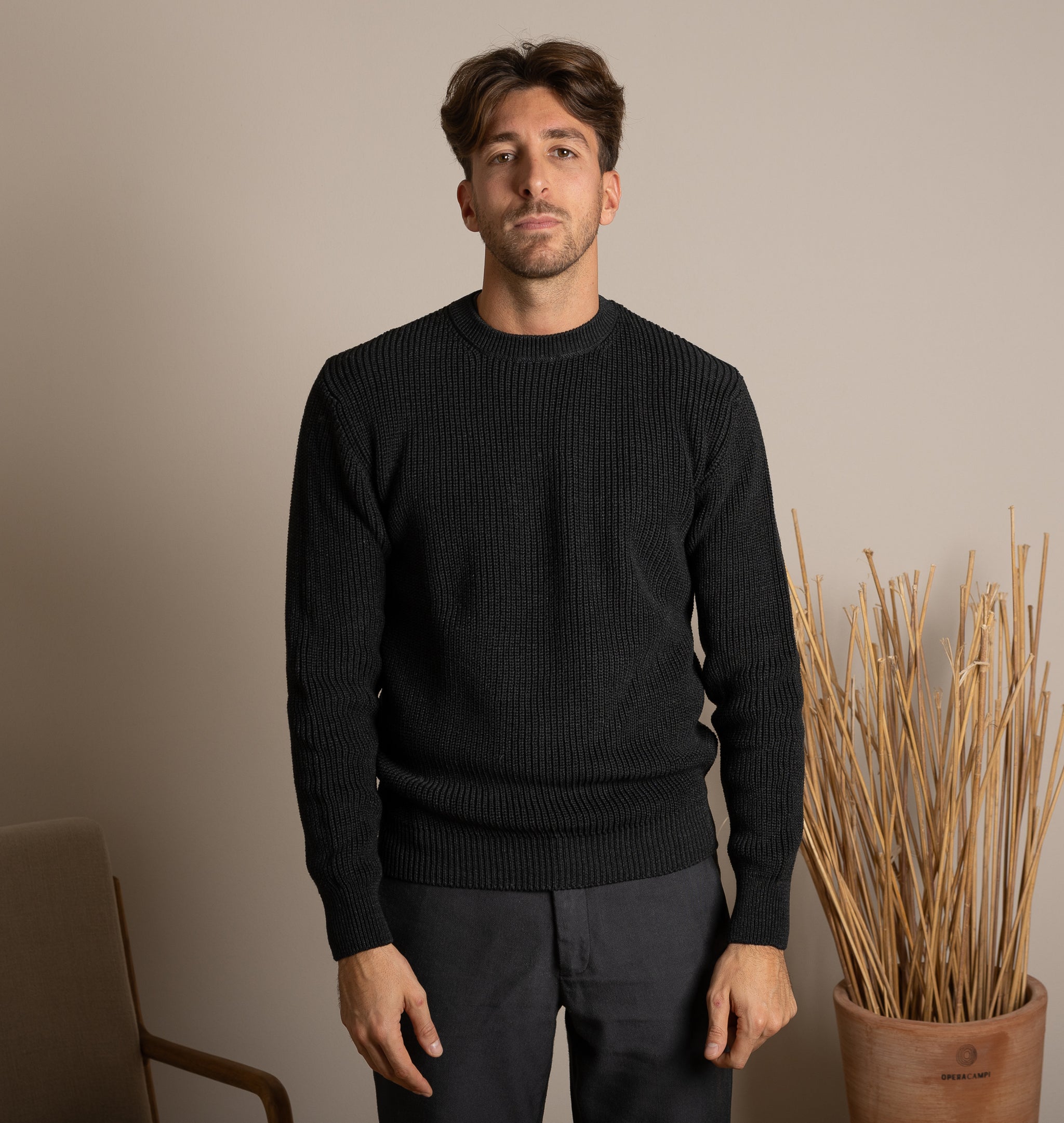 "Fieno Lanapa" is a thick jumper is made of 100% Lanapa®: our intelligent blend of Wool and Hemp.