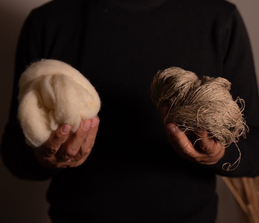 - Elastizität und Komfort, bereitgestellt durch die Wolle, ausgeglichen durch die Festigkeit des Hanfs für einen stabilen, aber flexiblen Stoff.