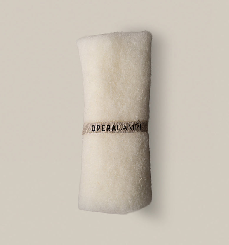 Auch wenn wir die Wolle von vertrauenswürdigen Lieferanten kaufen, ist die Hanfkomponente der "Lanapa" natürlich unser Material, das du immer getragen hast: der "Hanf" von Opera Campi, der feinste und weichste Hanf, der je gesponnen wurde.