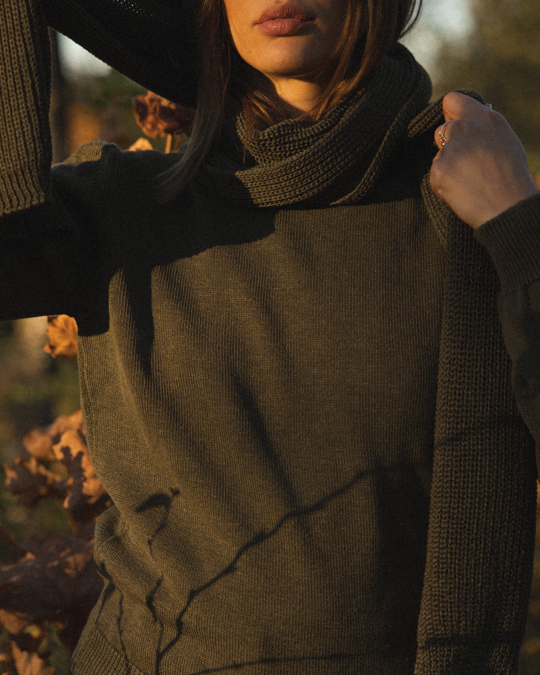 La bufanda sostenible más cálida, hecha con el futurista "Lanapa", nuestra mezcla especial de lana merino y canapa.