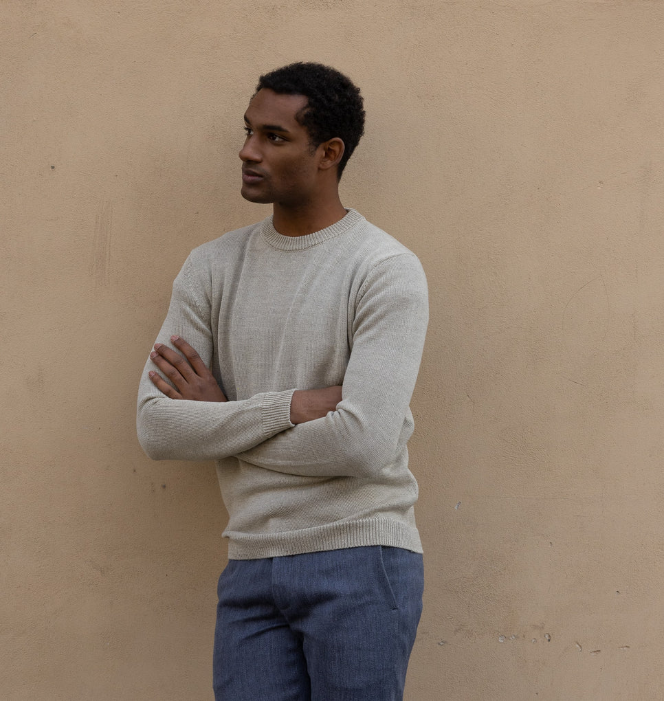 Interior en suave y cálida Lana Merino Australiana extra-fina: la mejor calidad. Exterior en nuestra preciada Canapa termoregolante. Una obra 51% Lana y 49% Canapa lista para ser usada todos los días del invierno. Una elección diferente, sostenible, cómoda y versátil, realizada en nuestro taller de Tejidos de Parma.