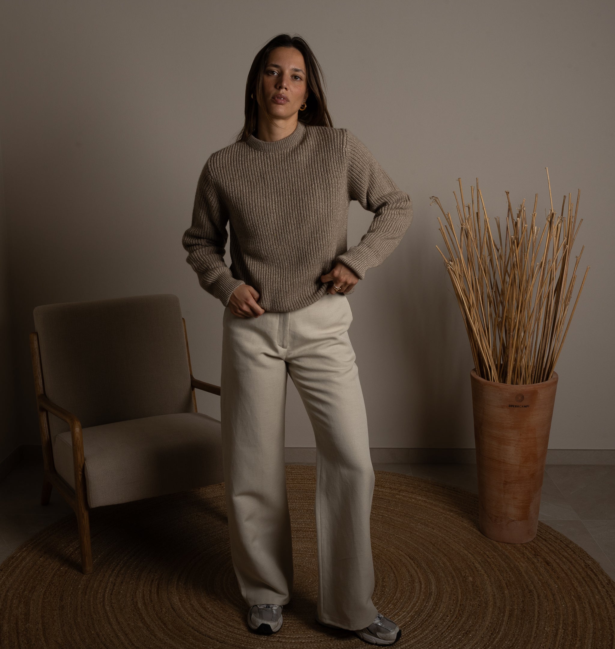 Il Cashmere è il filo più caldo al mondo. La Canapa il più sostenibile e termo-regolante. Il risultato è un capo caldissimo, ma che regge bene anche temperature più miti.