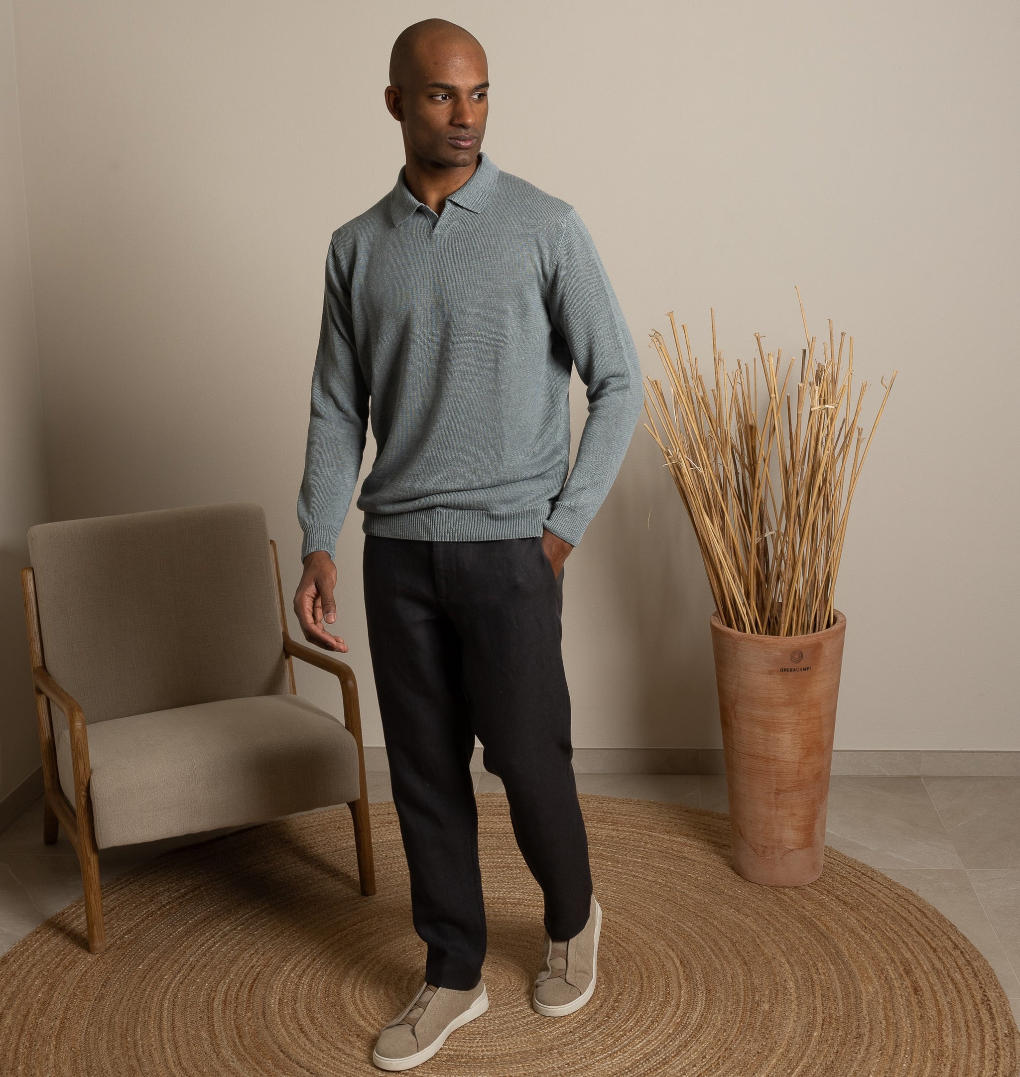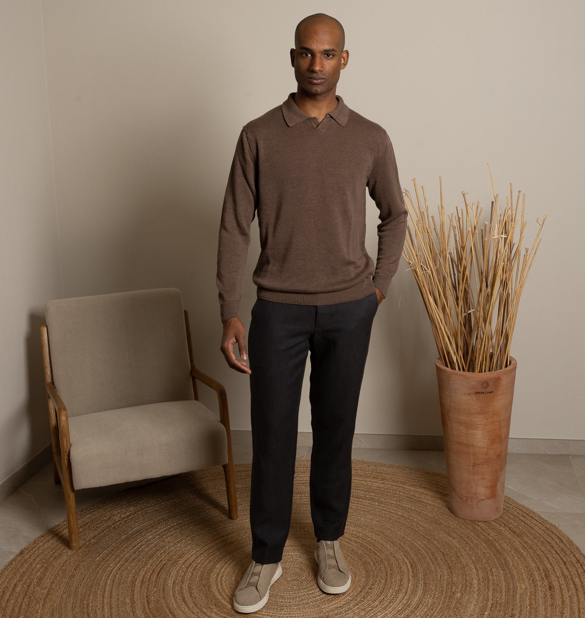 Polo 100% Canapa realizzata dal nostro laboratorio di Parma con la maglia più semplice e minimale. Delicata sulla pelle, con una texture morbida e leggera.