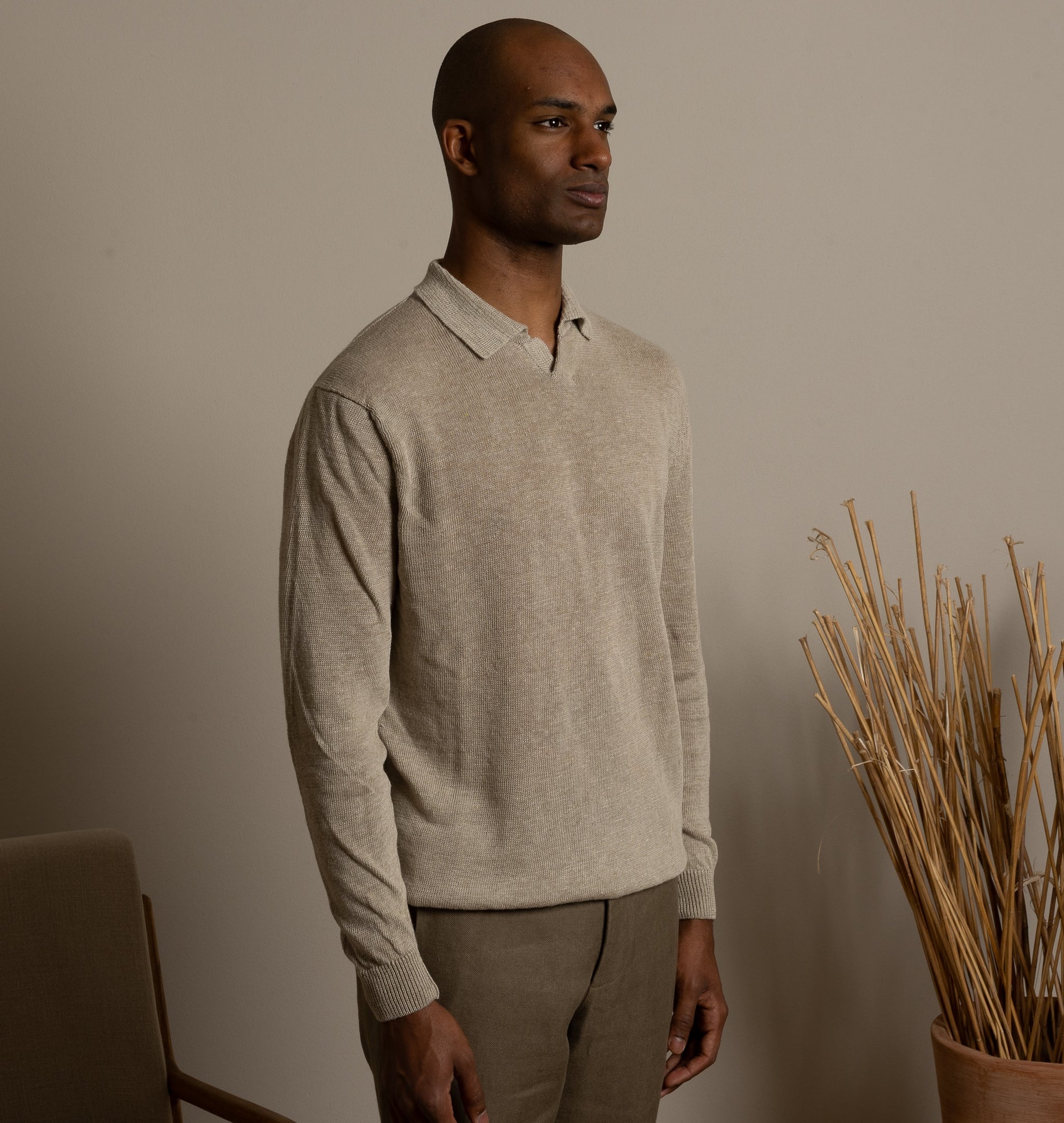 La polo a maniche lunghe più pura, 100% canapa non tinta