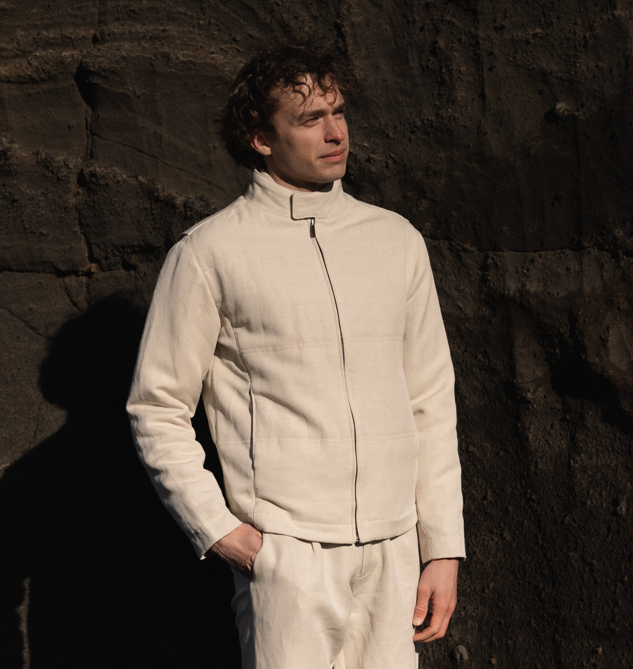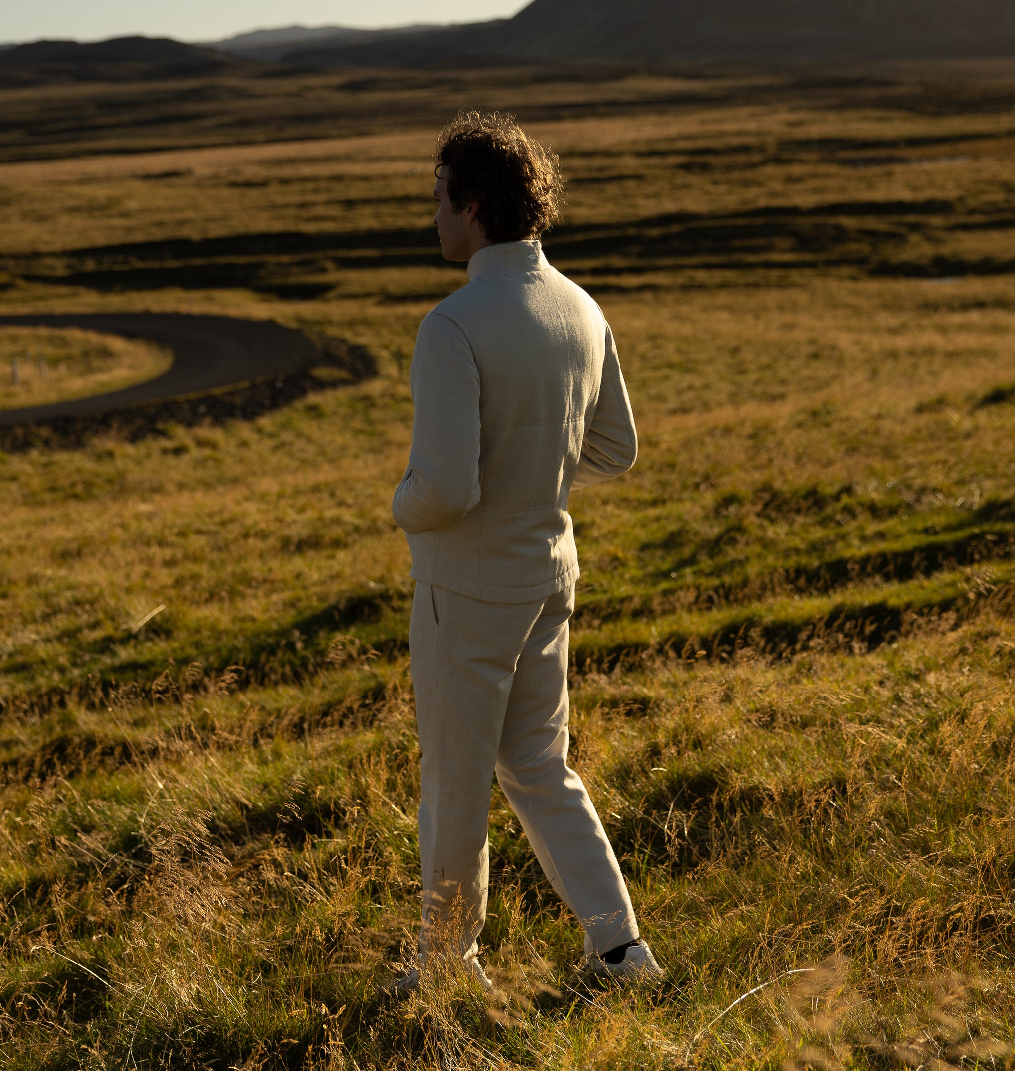 Lanapa®は私たちの最もホットな発明です。これは、50%の上質なメリノウールと50%の私たちの高級な麻で構成されています。このユニークな組み合わせは、生地を寒い季節に暖かく、持続可能にします。