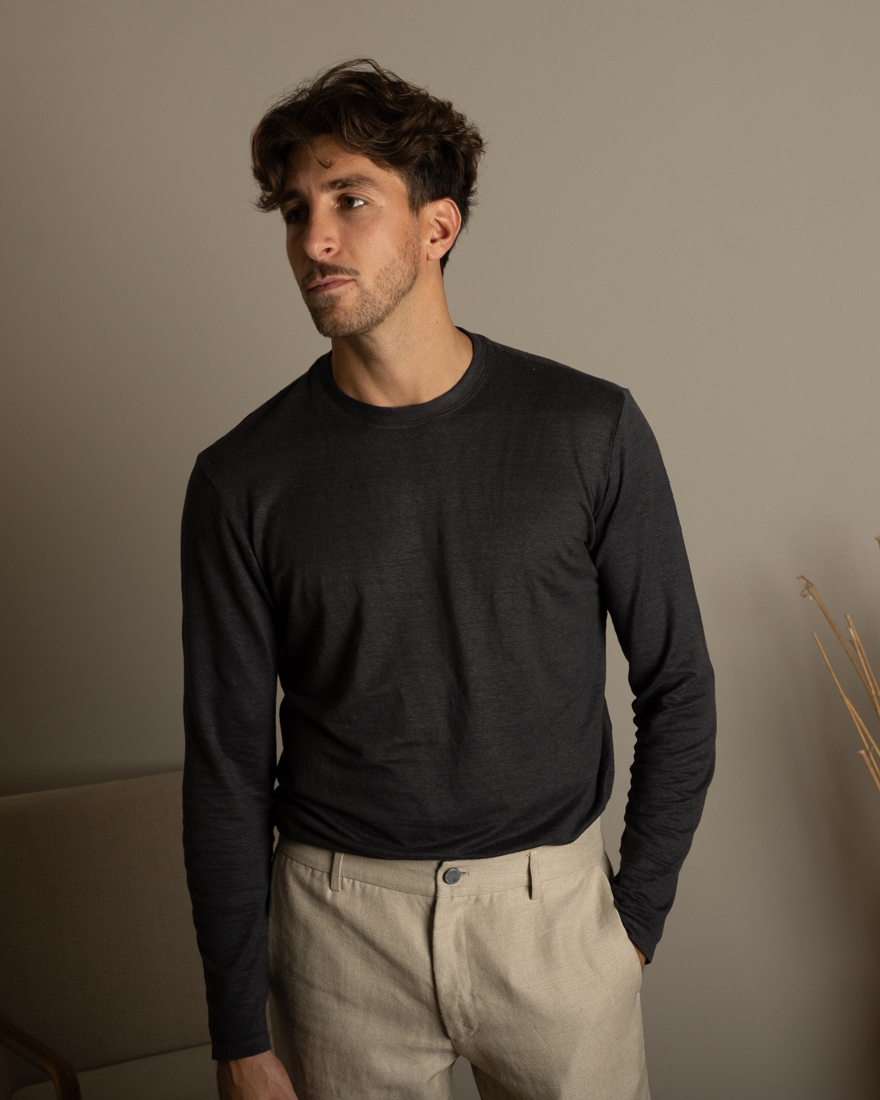 イタリアで最も優れた糸を使用して作られたカンナビス製のテーラーメイドパンツ。クリーンで、エレガント、そしてモダンなカット。