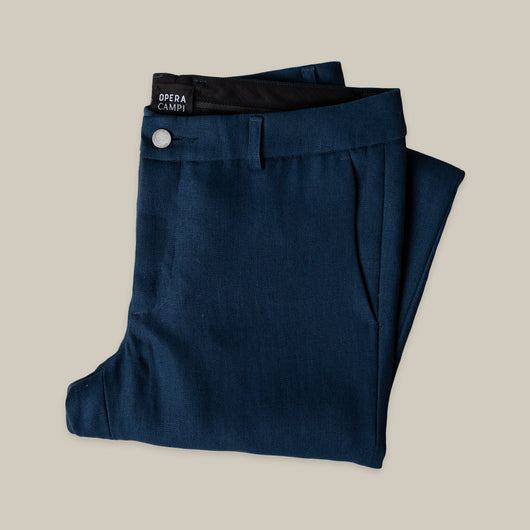 The “Largo” cut is the quintessential wide-leg trouser, with generous volume that falls straight down to the foot. It’s certainly less suited for elegant occasions, often conceptual in nature, but can be paired with more refined pieces for a striking contrast. The hemp composition further emphasizes the pant’s spacious silhouette.