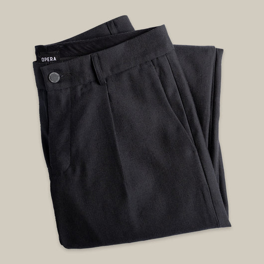 The Relax cut falls straight along the leg, unlike the Classic cut which tapers towards the ankle. It often features pleats at the waistband. This cut is more comfortable, more relaxed and conceptual — yet no less elegant, and never vulgar.
